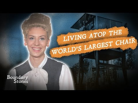 In the late 1950s, D.C.'s Curtis Brothers Furniture Store partnered with Bassett Furniture, which built the World's Largest Chair – a 19.5 foot tall, 4600 pound Duncan Phyfe -- and installed it outside their showroom in Anacostia. Then, they built a glass apartment atop the chair and convinced 19-year-old Lynn Arnold to live there in plain view, 24-7.